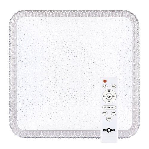 Світлодіодний світильник Biom SMART SML-S03-70 належить до групи розумних приладів, якими можна дистанційно керувати за допомогою пульта. Виріб виконаний у білому кольору та облямований гранованим малюнком. При роботі світильник змінює колір залежно від температури кольору світіння – теплої, нейтральної або холодної (від 3000 до 6000 К).
